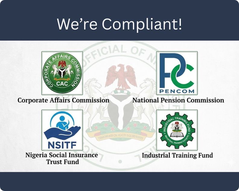- Nigeria Social Insurance Trust Fund (NSITF):Fully compliant with the Employees’ Compensation Act 2010.